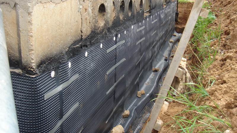 После этого дом получит защиту от намокания фундамента и стен. Недостатком является низкая механическая прочность пленки, целостность которой способны нарушить даже камни, присутствующие в материалах обратной засыпки. Поэтому, мастики часто служат нижним слоем комплексной гидроизоляции. До окончательного высыхания на них наклеивают мембраны, полиэтиленовые пленки либо наплавляют рулонные материалы.